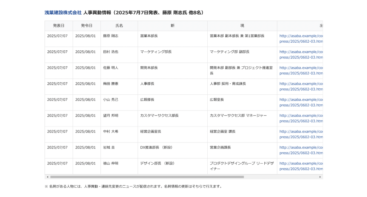 名刺交換していなくても、企業のニュースで人事異動を取得可能に
