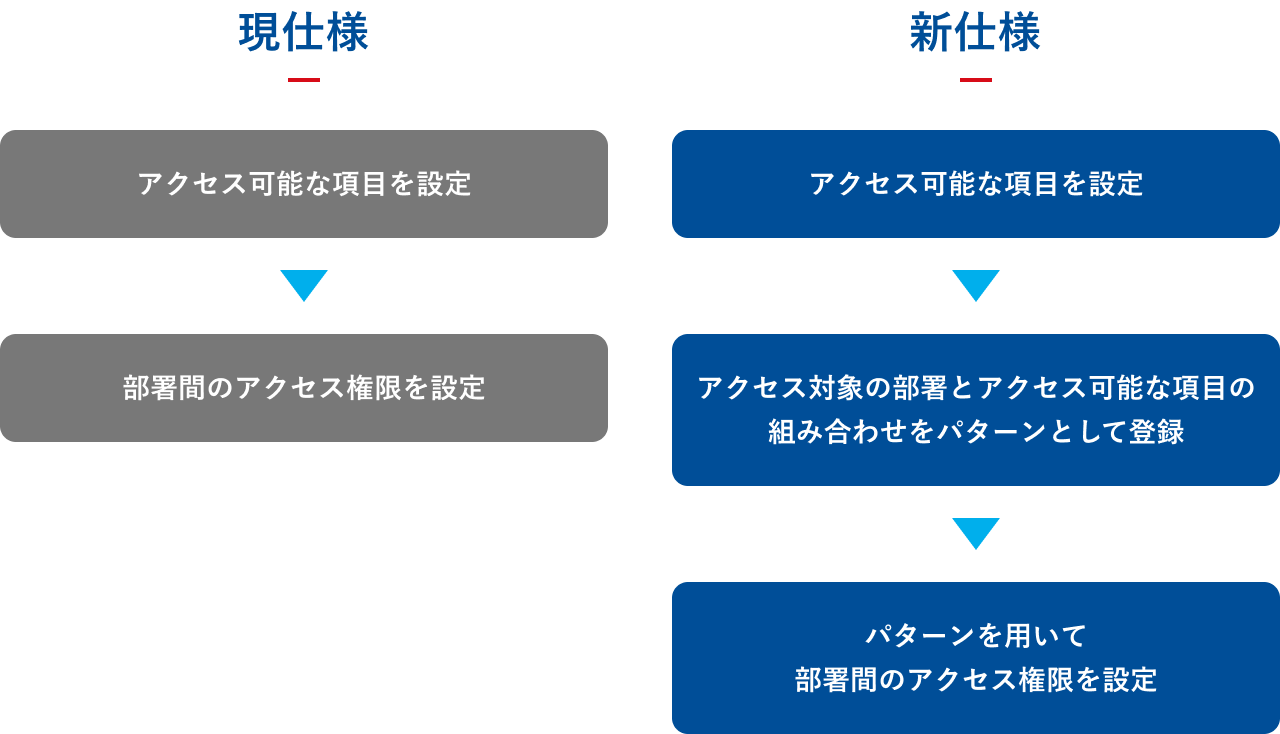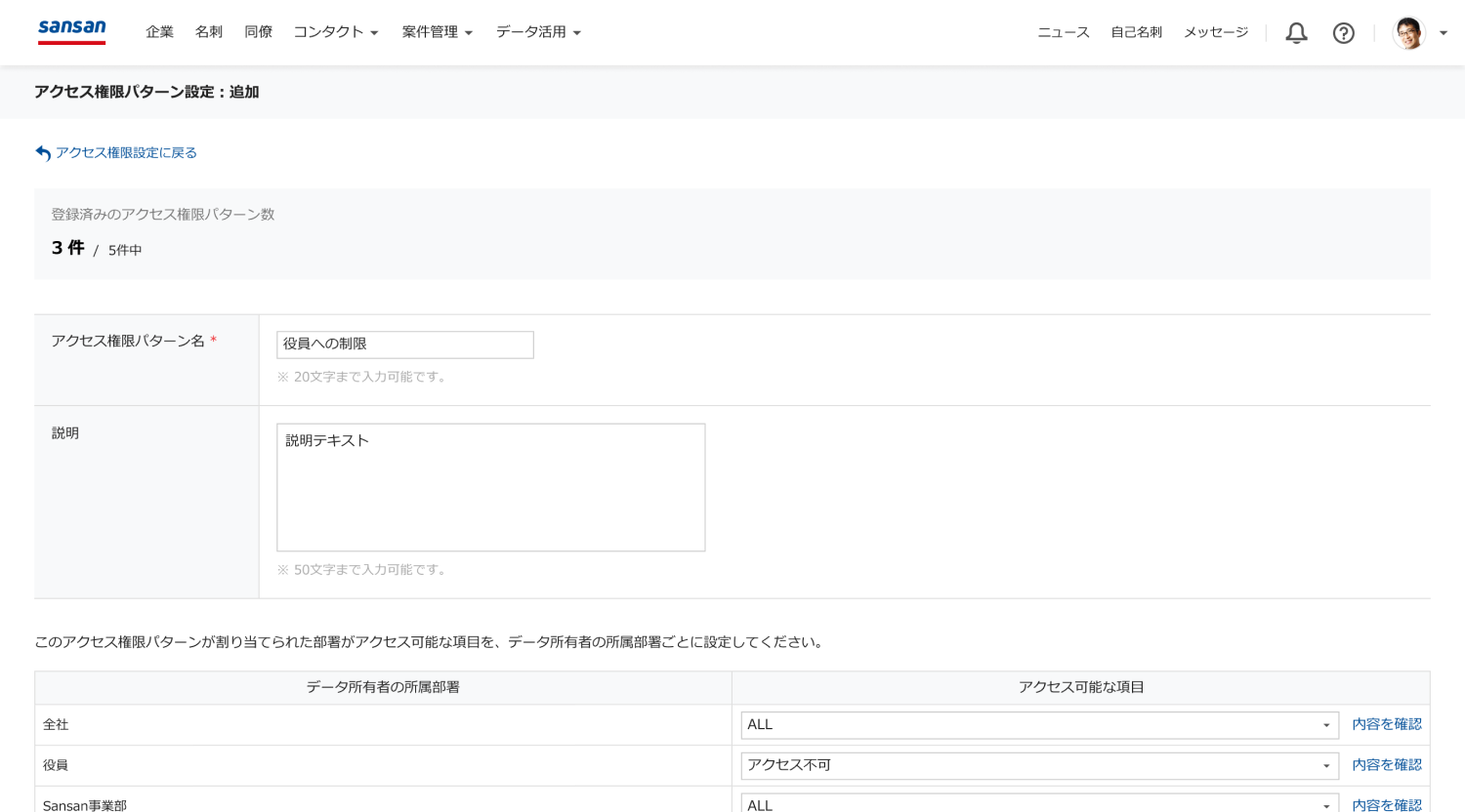 アクセスされる部署と、その部署に対して「アクセス可能な項目」を「アクセス権限パターン」として設定