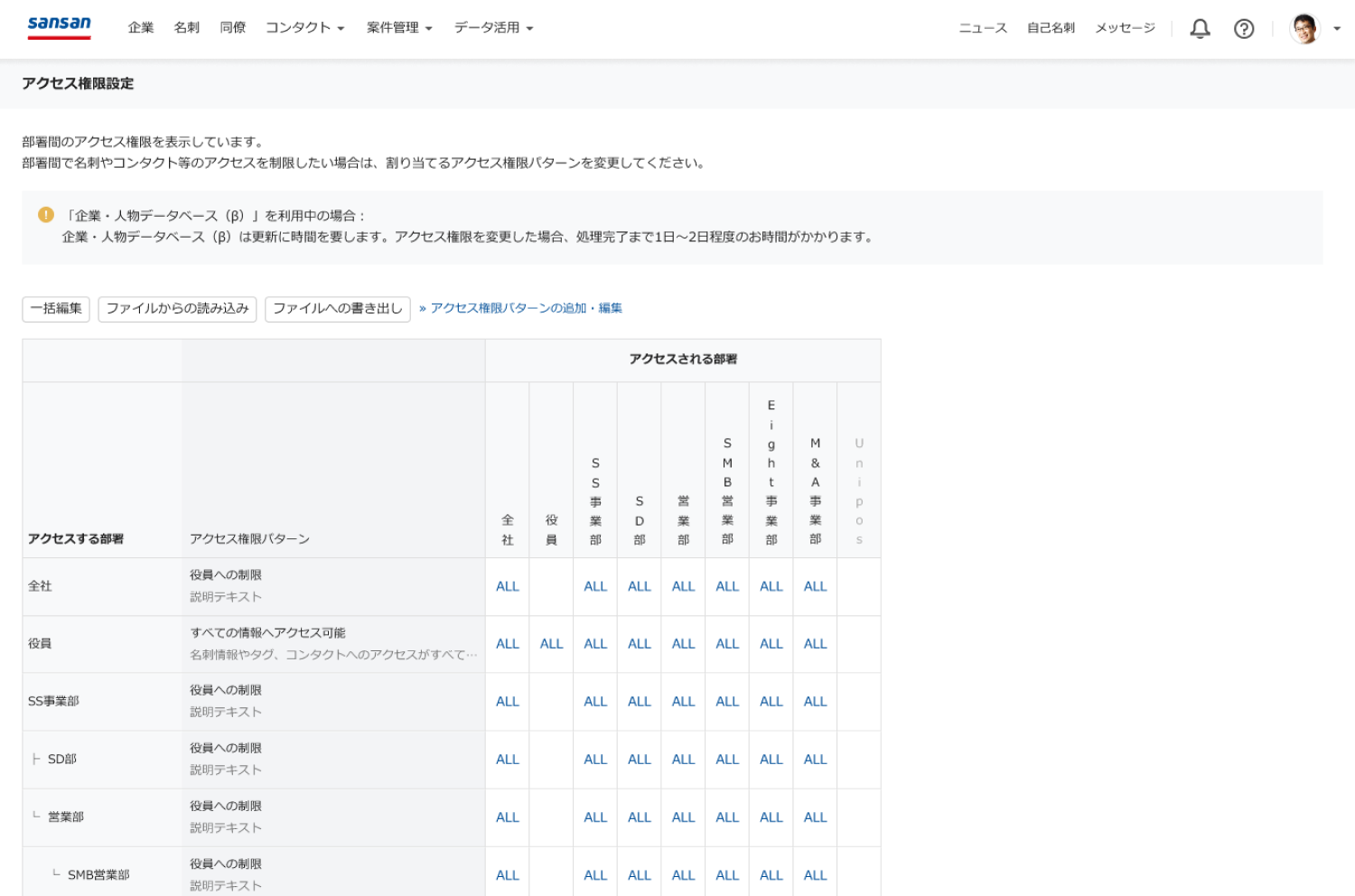 管理者は、部署間のアクセス権限を名刺の項目単位で変更することができますが、2025年5月末を目処にアクセス権限設定の手順を変更します。